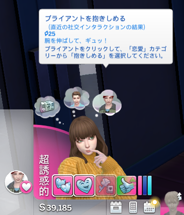 昨日と比べてブライアントの恋愛ゲージが少し減ってます。
