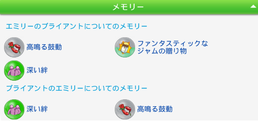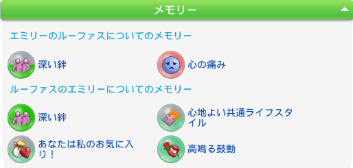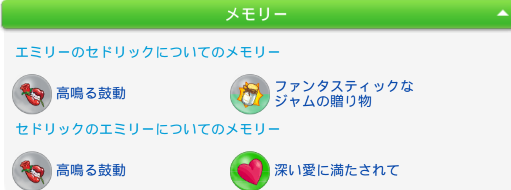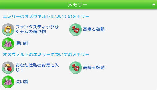 ひたすら仲良く過ごして終了。メモリーはこんな感じ。
