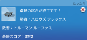 ここでルーファスとアレックスの卓球が終了。