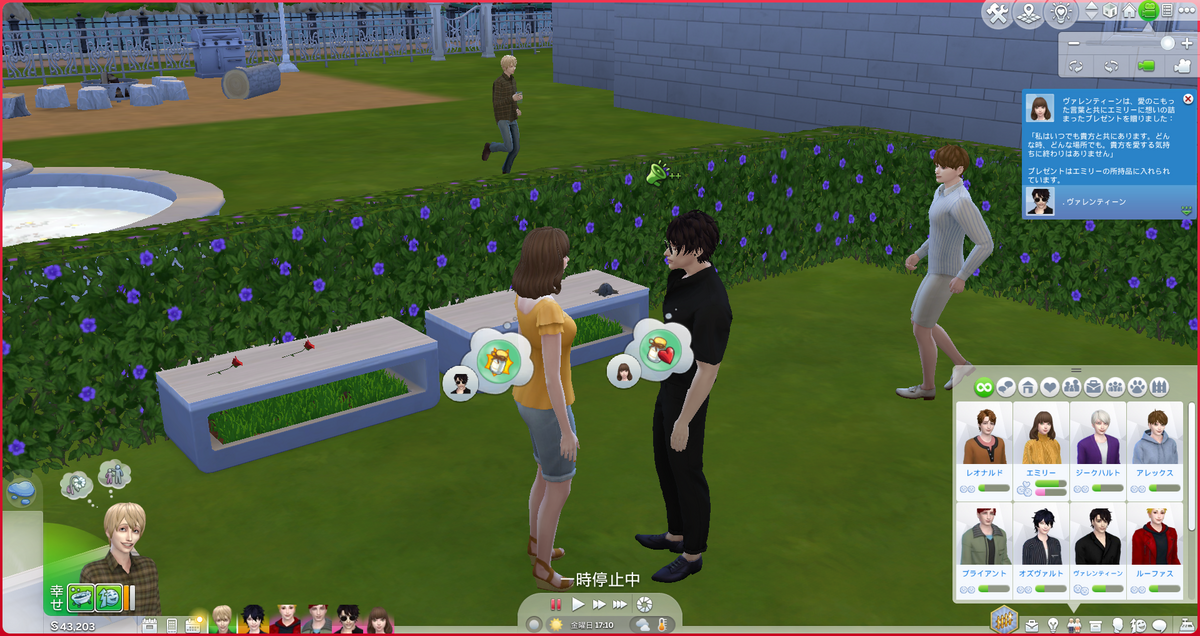 ブライアントとヴァレンの差がわかりにくいんですが、ヴァレンが一番高かったです。エミリーとヴァレンは友好恋愛どちらもカンストしてるのでまじか~と思い、念のため用意してたルーレットも回してみました。