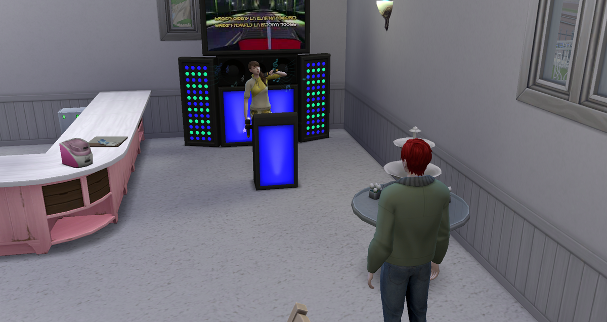 注文した料理が運ばれて来るのを待つ間、セレナーデを歌うエミリー。